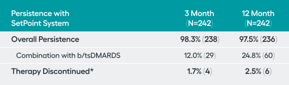 *Analysis based on patients who were treated for 12 months with SetPoint Therapy without the addition of a biologic, JAK inhibitor or steroids, or change in their csDMARD.